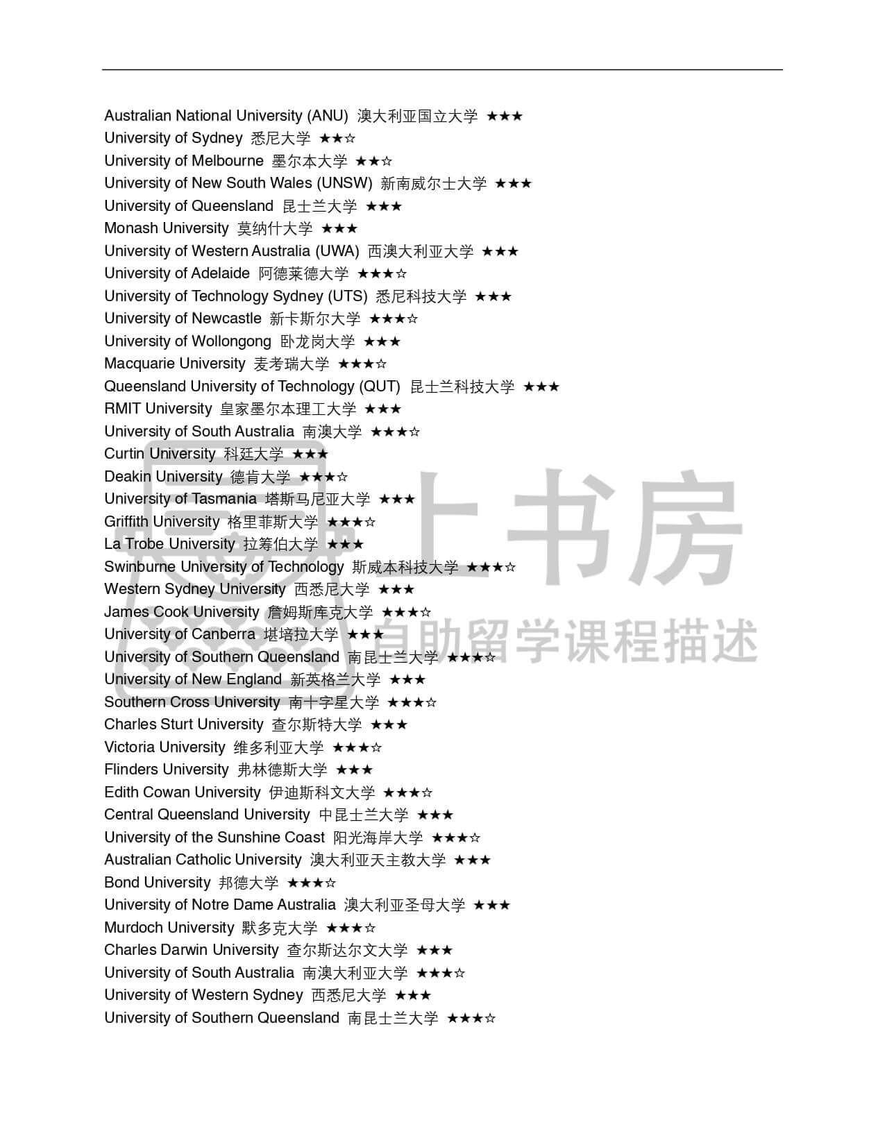 澳大利亚最适宜中国学生转学分的45所大学,含难易度